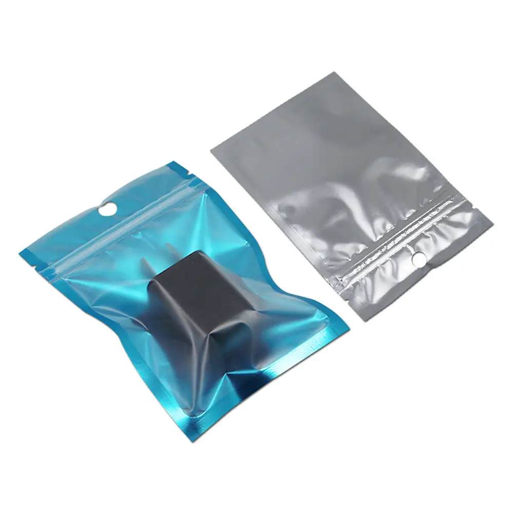 100Pcs Front Matte Clear Plastic Bags Colorful Aluminum Foil Bag Sundry Pouch Frosted Mylar Zipper Package Bag With Hang Hole